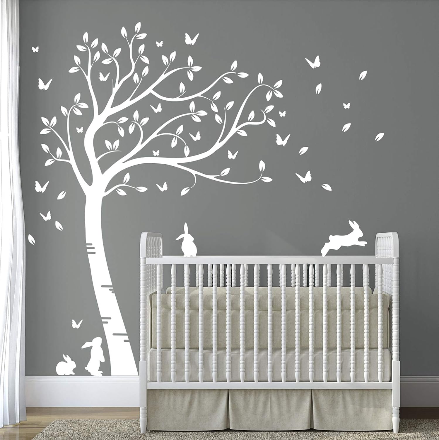 Designdivil Full Size White Beautiful Bunny Rabbits Tree Nursery Room Wall Decal Dd007