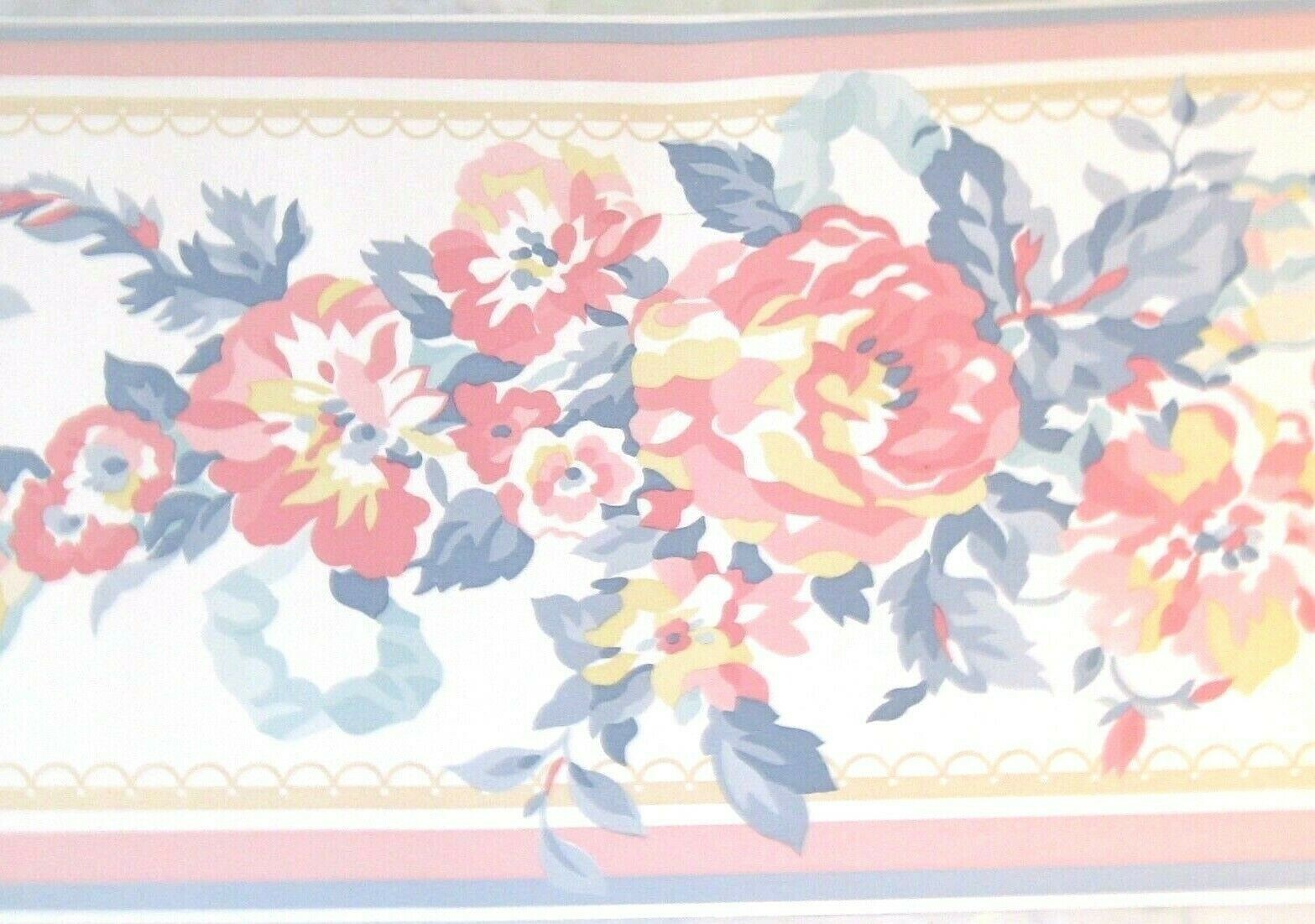 Wallpaper Border Flowers Floral Roses Yellow Pink Blue White 10 3 8 Wall 552161